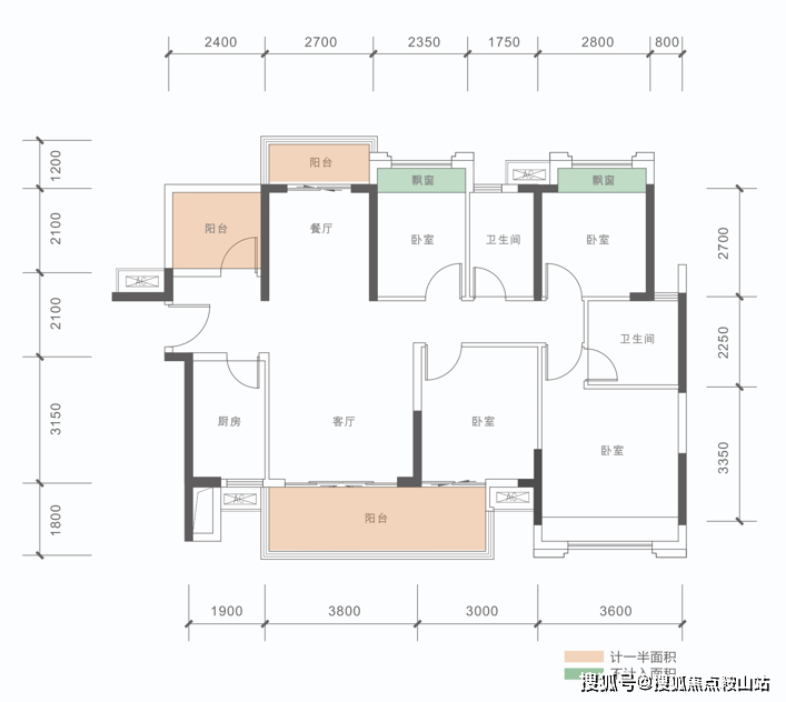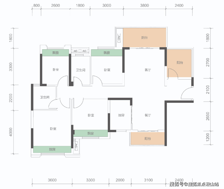 B户型: 100㎡(3+1房,2卫)同级面积稀缺3+1房、稀缺三开间朝南,总价约108万。