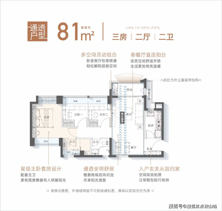 81㎡户型是红山稀缺三房两厅两卫户型,格局方正,一步到位满足全家人居住;