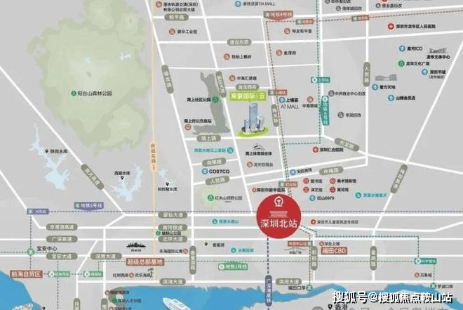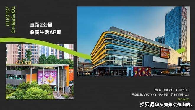 项目2公里范围内形成“五馆三 Mall”格局,包括Costco 华南总部(已开业,直线距离约 400 米)、红山 6979(深圳网红商业体,2025年二手房均价约5.1万/㎡)、壹方天地(60万㎡航母级商业集群,全国首店超30家)。