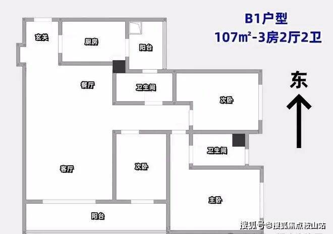 户型B2-107㎡3房2厅2卫