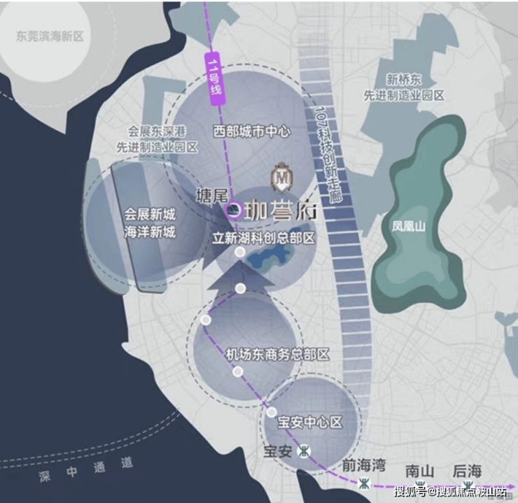 深圳向西发展:沿罗湖-福田-南山-前海及宝安的发展脉搏,2021年前海8倍扩容,深圳向西势不可挡。三重国家战略:前海一级辐射区、会展海洋城、空港新城三重国家级战略叠加,“黄金内湾”崛起。