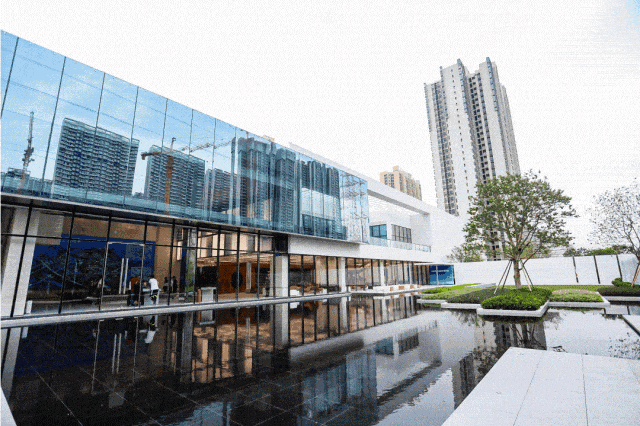 近期开放了全新的富颐都荟生活馆。生活馆以金属和玻璃为主体,简洁而不失大气,同时又与外部的水景互相交融,远远望去就像一座艺术馆,将项目的整体美学展现得淋漓尽致。