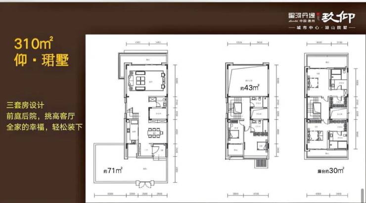 310平临湖一排别墅,使用面积810平,买三层享五层,地下室全采光设计,中间位1100万,边位1500万。