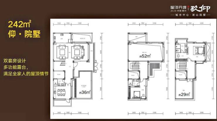 242双拼合院:位置在湖心岛,产品稀缺共28套,下沉式庭院隐私性好,使用面积780平,买三层享五层,五层全采光设计中间位780万,边位900万。