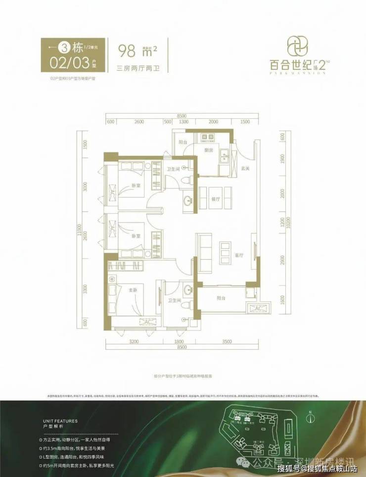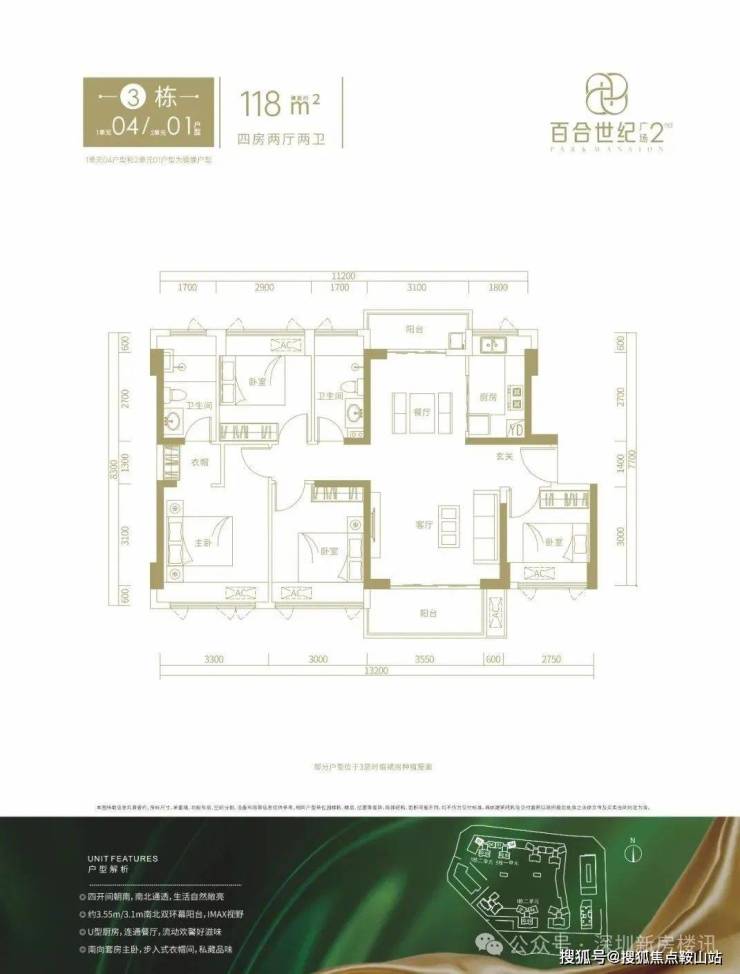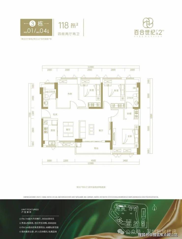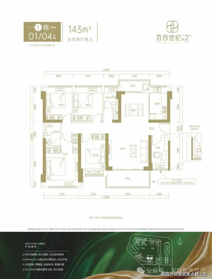 位于龙岗布吉,百合世纪广场2期本次首推3栋1/2单元跟1栋2单元,共401套房源,面积有98-104平的3房2卫,118平的4房2卫,143平的5房2卫户型,做到了户户朝南,或者南北通透格局,备案均价6.09万/㎡,备案单价5.56-7.61万/㎡,备案总价544-1085万/套。
