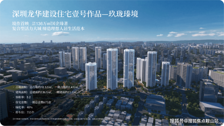 『玖珑瑧境』总占地面积约18.3万㎡,规划总建面面积约136万㎡,分四期开发,涵盖住宅、商业、学校、产业、社区配套等多元业态,是深圳不可多得的超百万建面城级综合体项目。