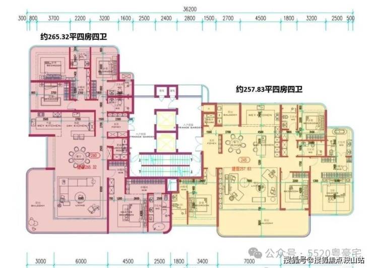 其中最大的332平4房5卫+家政套间,分布在2/3单元,据说按目前深圳新规豪宅最高标准打造。