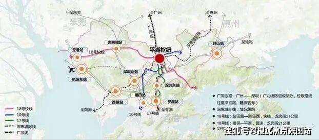 “1+2+3+4”立体交通网:1枢纽、2城际(广深城际、深惠城际)、3地铁(10号线、规划中的17、18号线)、4高速、快速(清平、沈海、丹平、南坪)。