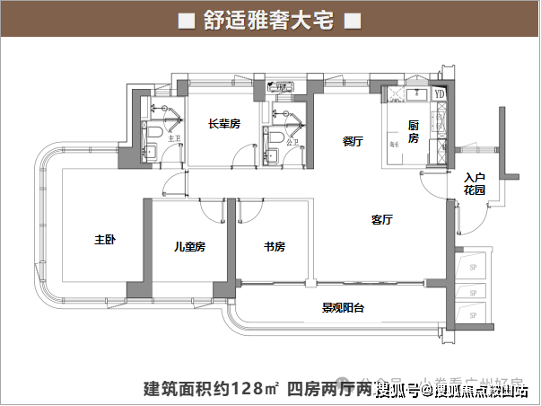 128㎡四房:经典竖厅设计,客厅开间达4.2米,主卧带独立衣帽间,适合三代同堂家庭;