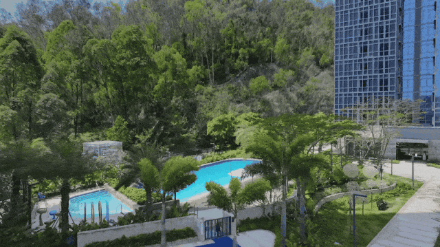 畅游半山森林泳池中,抬头即是满眼绿意。