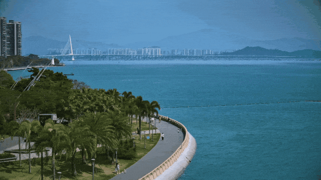 沿着深圳湾滨海长廊骑行,感受海风拂面。