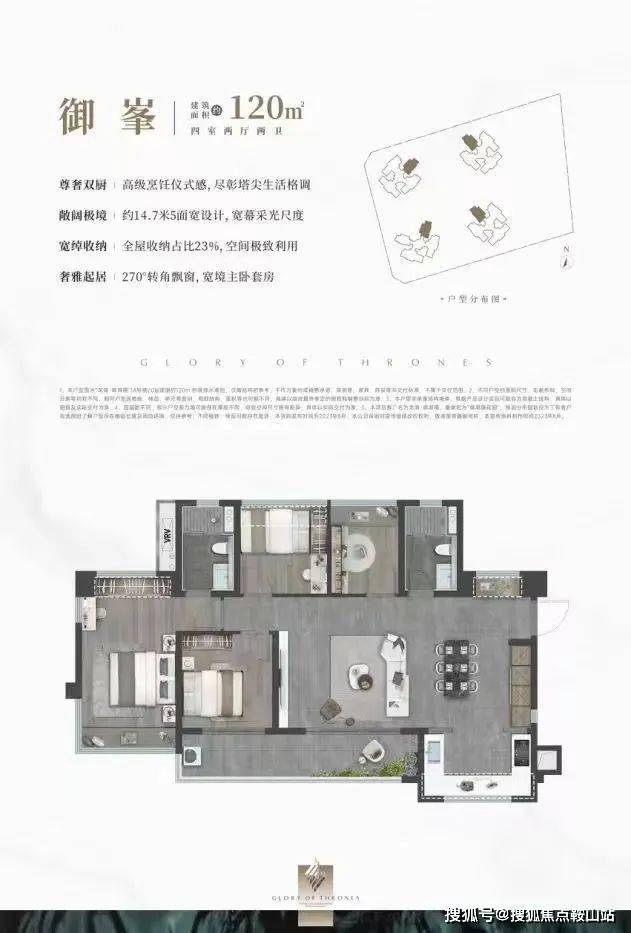设计的是横厅南北通透格局,客餐厅开间8米,约14.7米超幕视野,超长阳台,主卧转角270°大飘窗,U型厨房,得房率:78.99%(不含赠送),阳台主朝西南或东南向。