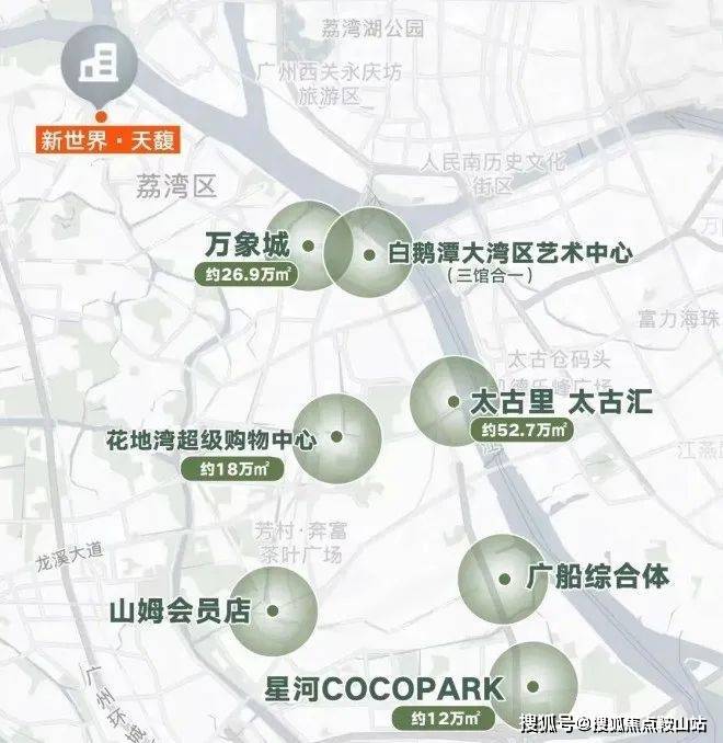 立白集团、大坦沙国际医疗健康城、白鹅潭国际金融中心、广州阿里云创新中心、白鹅潭大湾区艺术中心等国家/城市级公建地标林立,星光璀璨。