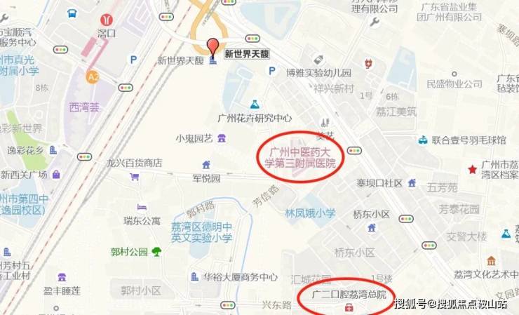 3公里内有5所三甲医院,广州中医药大学第三附属医院{芳村院区},广州医科大学附属第一医院,广东省中医院芳村医院等等。