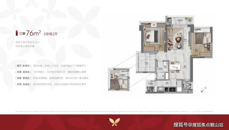 76-89㎡爆款三房,总价280万起。