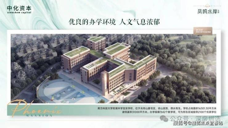 12年一站式目送教育:项目楼下就是九年一贯制南科大附中宝安学校+幼儿园,邻距离上学,大人负担小,学生安全不辛苦。