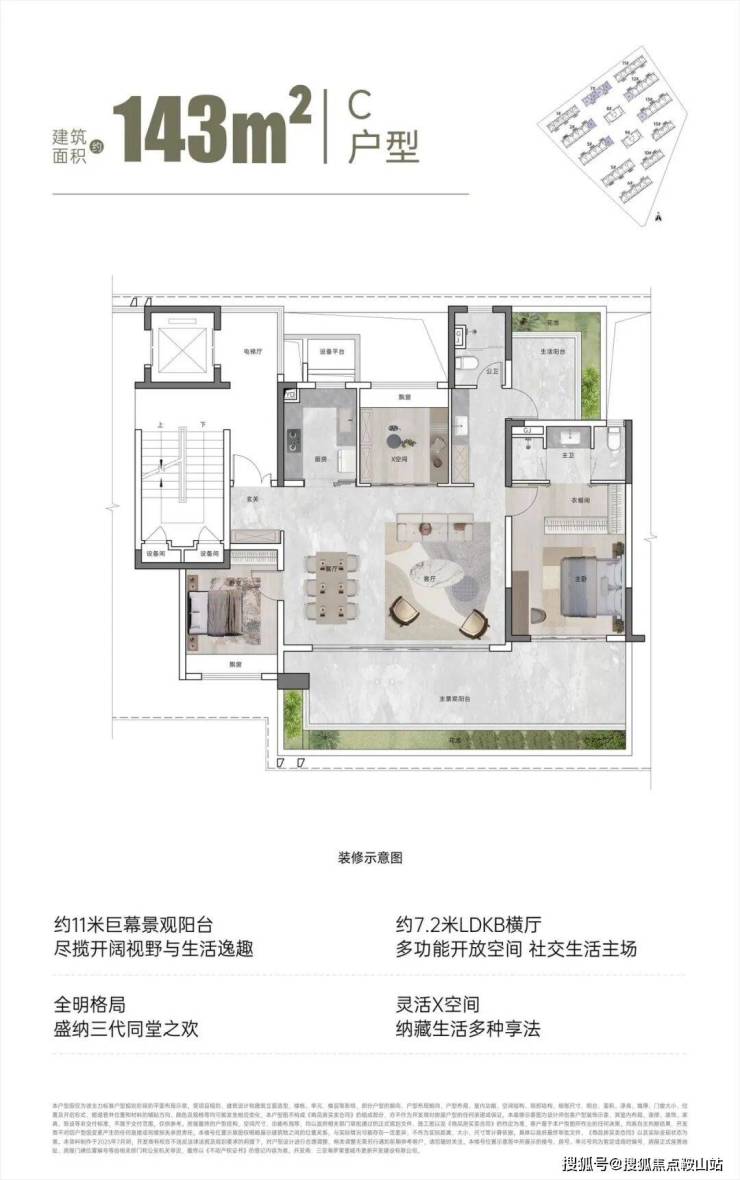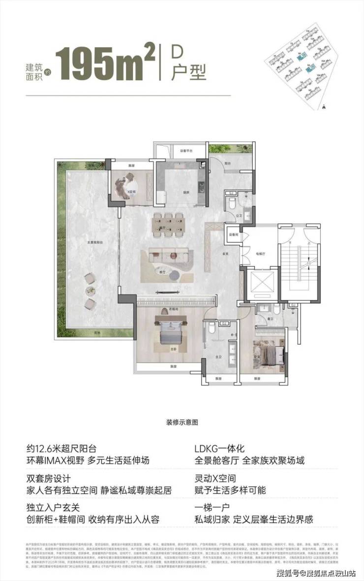 【面积区间】建筑面积约110㎡、131㎡、143㎡、195㎡