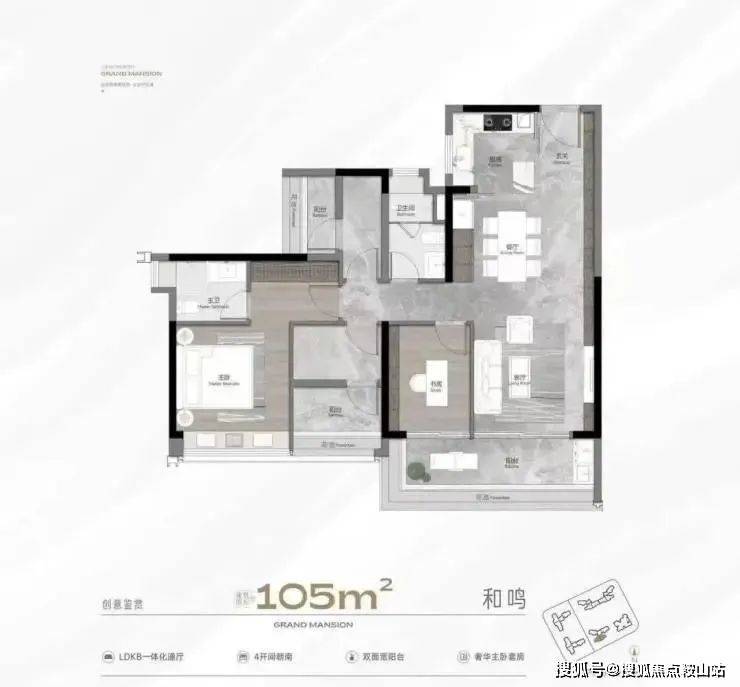 滨江四房发售户型:建面约105-188㎡滨江四房