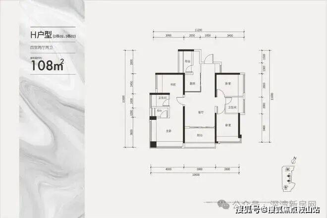 建面约108㎡双龙抱珠四房户型