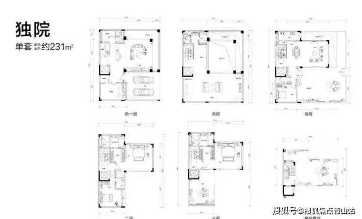产品户型:建面约230-252m²,使用面积约700-1000㎡的传世院墅