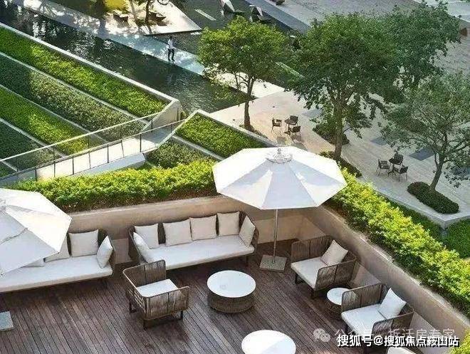 围合式庭院布局最大化构建着生态园林,采用密集的多层次花园种植,营造宁谧安静的休闲空间,辅以地形和水景的设计营造充满艺术感的休息环境。