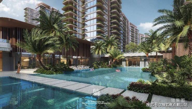 信步示范区内部,犹如徜徉一片三亚市心的静谧绿洲。来自曼谷的景观事务所TROP借鉴海内外高奢度假酒店形制,以“一心双庭”设计融合热带植被水景,带来丰富且宁静的度假氛围。