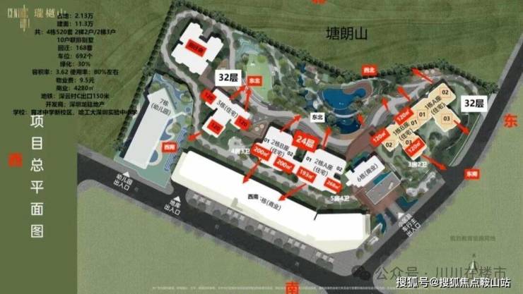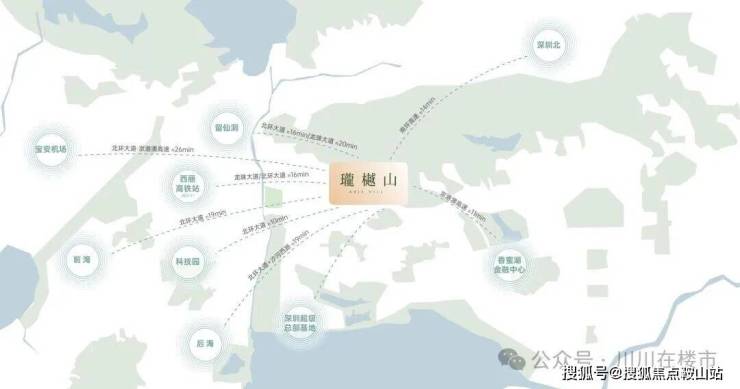 1、中心区域:深圳山海城中轴,左手香蜜湖、右手华侨城,六大总部基地环伺