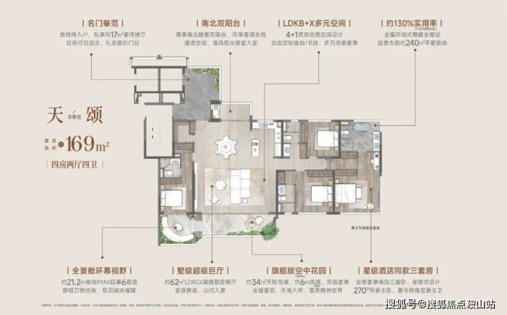 “全一梯一户设计、超高实用率、空中浮岛花园、270°环幕采光……” 香山颂以第四代基因