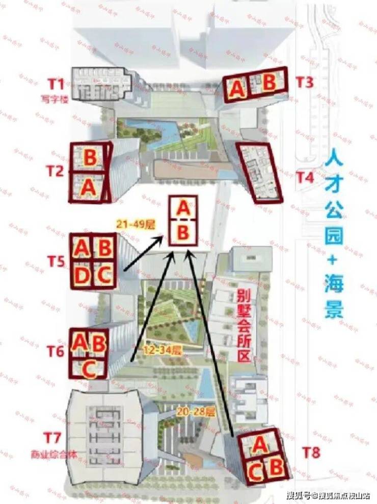 深圳湾一号分南区2区,北区为T1、T2、T3、T4,T1栋为办公楼。南区为T5、T6、T7、T8,及7套商业性质的别墅