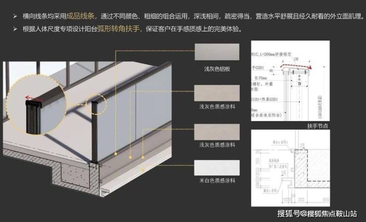 整体以横向线条为基调,冠顶利用弧线造型形成灵动的立面效果,造型主要轮廓采用暖色调,营造温暖质感和烟火气息。
