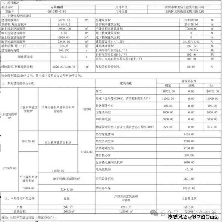 总规划1508户,全部都是商品房,其中1栋2单元3梯5户,其它栋数都是3梯6户设计,地下室有3层,规划停车位1777个,车位占比约1:1.18。