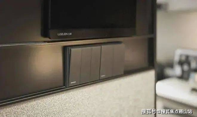 客厅整片的定制岩板背景墙及金属壁龛均为交标