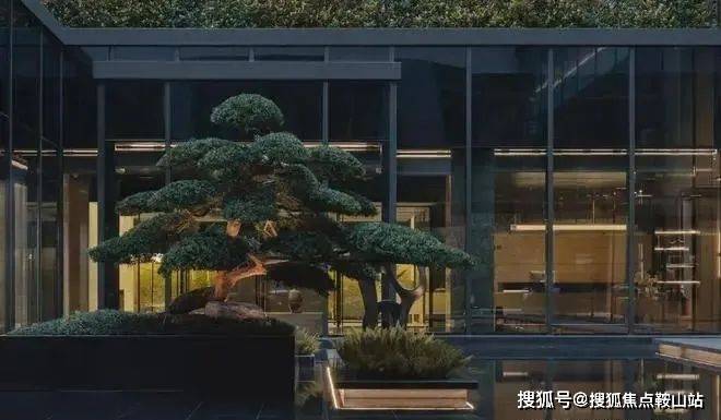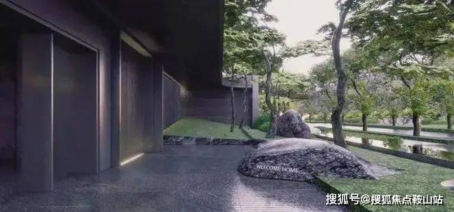 入口50米横向面宽,近6米的高跌水景墙与双层门楼让回家有了一份尊贵与隐奢;随着动线穿林,见山,伴水,来到模仿山石色调与铜色金属融合打造的酒店式大堂,一路草木清香、青石铺地、水系流动,自然的隐奢之美扑面而来。