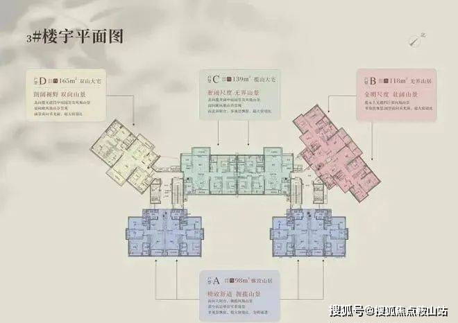 户型背山面海,超大的窗墙比将窗外无价的山海资源揽入户内,所有户型都可以看到开阔的山景,部分户型高楼层可以同时看到山海景观;南向大面宽、小进深,结合现代人家居理念的LDKB一体化设计,打造城市之芯的巨幕山海。
