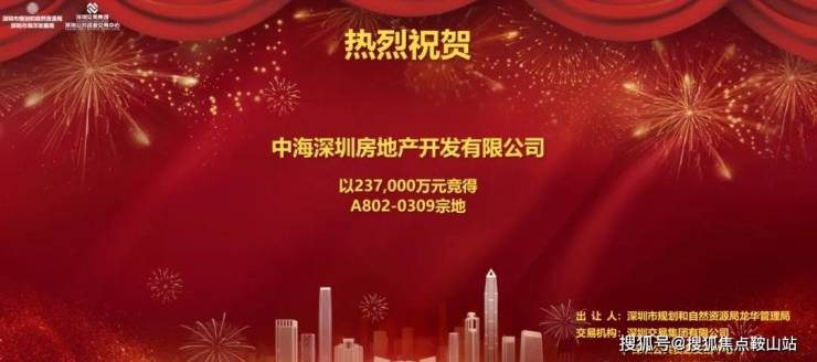 2025年7月7日,位于龙华区民治街道梅林关A802-0309宅地竞价出让,历经108轮竞价后,被中海深圳房地产开发有限公司以23.7亿元拿下,折合楼面价38795.22元/㎡。