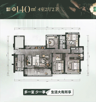 社区配套很讲究,户型也绝不将就。针对中山改善群体,打造118㎡/140㎡/177㎡三大产品系,全系第四代【3+X】大平层,实用率、尺度、开间、采光,通通都很豪横;赠送率高达20%,同时天花升级为弧形天花,彰显高奢审美;最重要是空间使用率超100%,舒适度直接拉满。