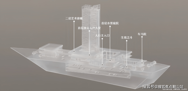 社区即旅程:创新的“超级底盘”彻底颠覆归家体验。地下三层的“生境之斗”将自然光与绿意引入车库;地上通过水景庭院、艺术连廊、天际花园,构建起一个立体、沉浸的漫步系统。归家,成为一场穿越自然与艺术的疗愈之旅。