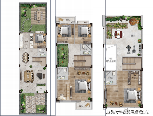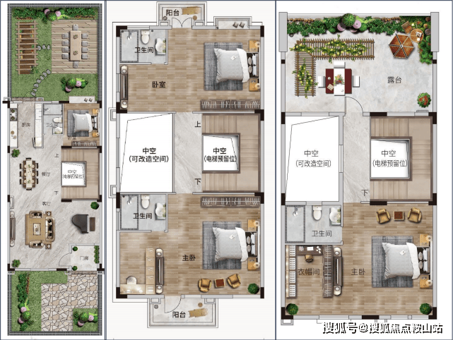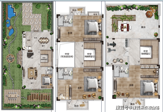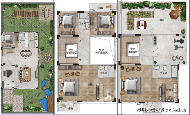 312㎡双拼别墅四联二层半,建筑基底卙地约139㎡,9米开间客厅面积:88㎡,三主套设计带约300㎡超大花园露台+中空赠送面积约91㎡