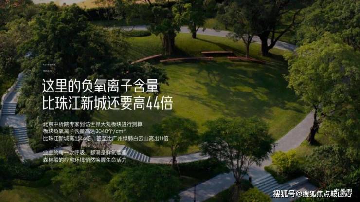 背靠约243万㎡原生山林,环抱约5.3万㎡日月双湖,实测负氧离子浓度超珠江新城44倍、白云山11倍。