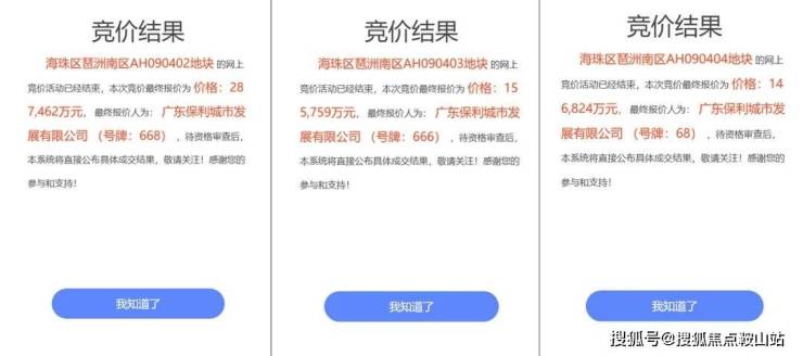 2024年10月30日,保利成功以底价摘牌海珠区琶洲南区AH090402、AH090403、AH090404地块,三宗地总建面13.8万㎡,总价约59.01亿元,楼面价为4.25-4.3万元/㎡,琶洲南三兄弟由此而生。