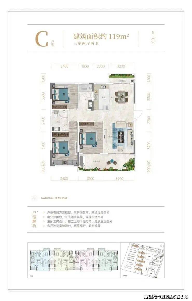 全新迭代建筑面积约109-119㎡升级户型,空间布局科学合理,全明户型,南北双阳台,270°环幕视野,重新定义高端品质人居尺度。