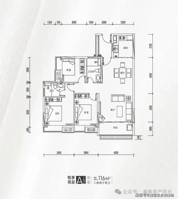 在售户型:建筑面积约99-100㎡三房两厅一卫、约116-119㎡三房两厅两卫