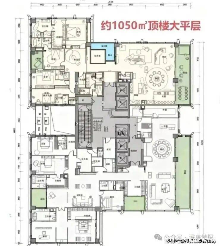 顶楼:约1050㎡整层大平层(仅3套)。