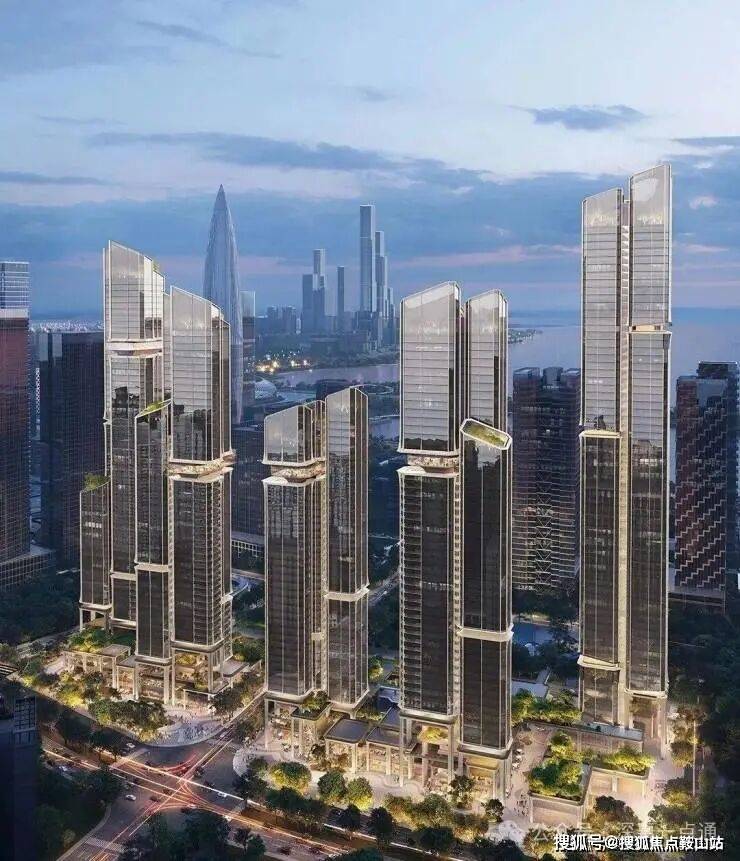 项目由五座150-250米塔楼组成,采用错落布局和平面退台设计,以优化深圳湾景观视野。
