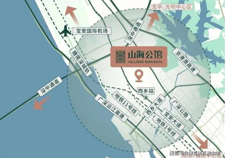 山海公馆位于深圳市宝安大道铁仔山公园旁,处于重点发展地区太空港和前海合作区之间,属于铁仔山生态景观轴心,具有较强的生态资源优势。