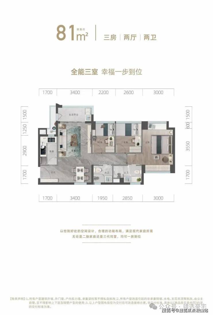 建面约 81/91m²三房两卫超能户型