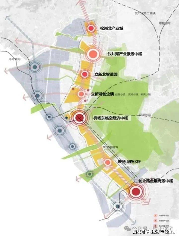 空铁新城·湾区三角核心:机场东超级交通枢纽·世界级空铁新城空铁新城机场东综合交通枢纽作为深圳建设国际航空枢纽与国家铁路枢纽的重要组成部分,集航空、高铁、城际、城市轨道、公交等多种交通方式于一体。目依托自身的交通优势。左连前海、右接会展。享受前海的金融利好辐射,又承载着会展的人流导入的功能。成是湾区三角中金融辐射、会展人流承载的核心地带