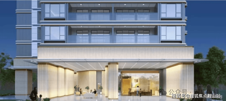 首层单元入口泛大堂,外墙采用白玫瑰石材搭配珠光白铝制雨棚,凸显稳重大气。通过弧面石材,柔化架空层的空间体验;通过增加石材表面竖向抽槽,提升建筑近人尺度的体验感;通过柱脚柱顶构件尺度细化,彰显入户环节的典雅细腻。