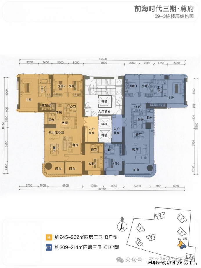 作为前海自贸区内唯一的纯大平层社区,前海时代三期尊府系列一直备受瞩目。本次加推的59栋三个单元,是项目最后一批大户型房源,共计推出214-296㎡大平层,预计2026年底交付。
