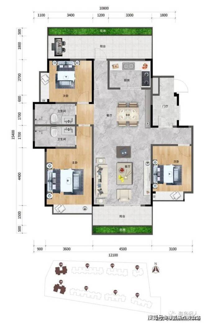 户型鉴赏【墅级花园洋房】A户型建筑面积约:106㎡ 两室两厅两卫